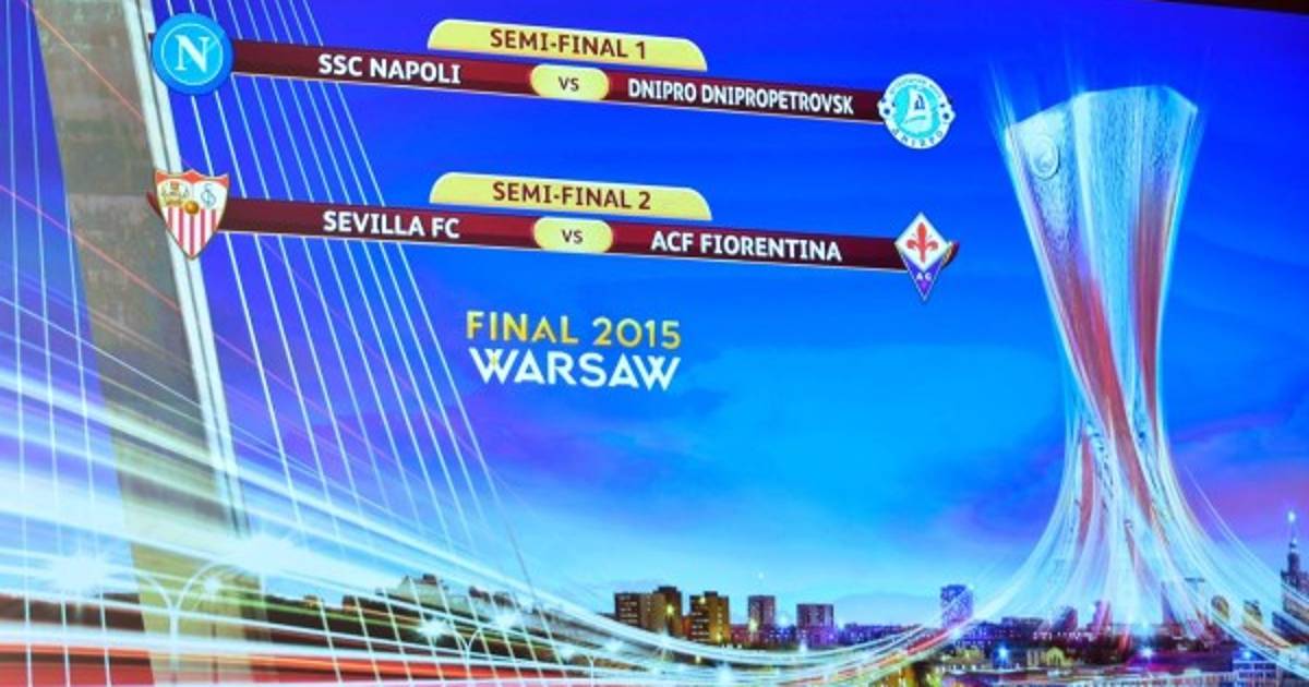 Nápoles-Dnipro Dnipropetrovsk y Sevilla-Fiorentina son las semifinales de la Liga Europa 2014-15, según el sorteo celebrado hoy en la sede de la UEFA en Nyon (Suiza).