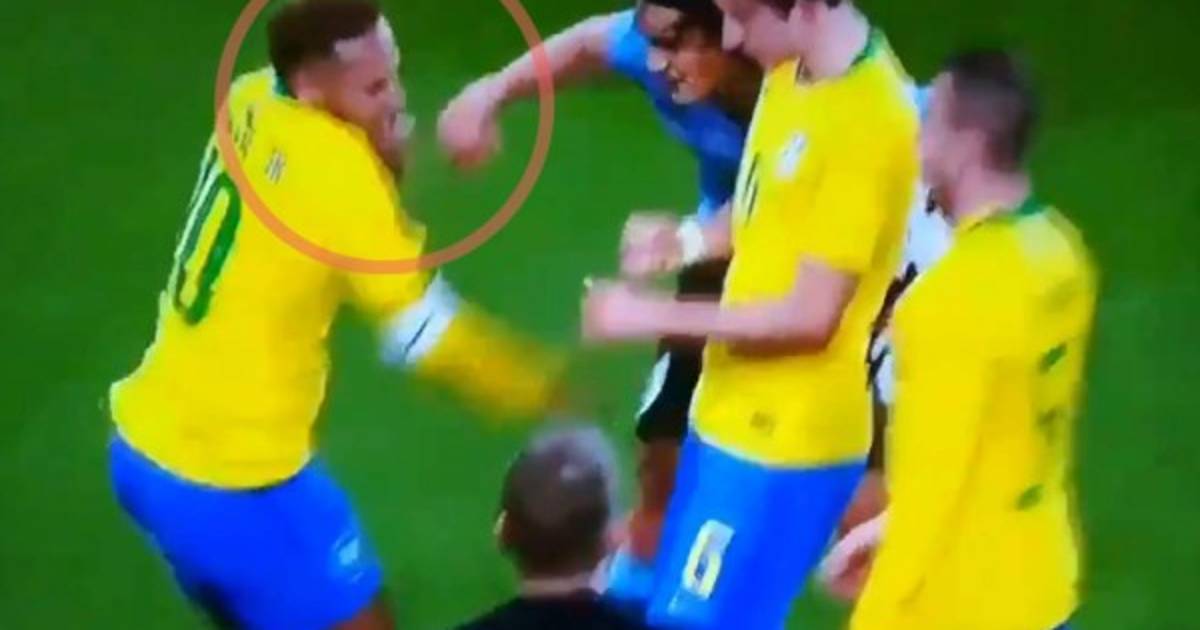En los últimos minutos del partido Cavani le cometió una falta al brasileño y éste cayó al suelo dando varias vueltas lo que provocó la molestia del uruguayo.