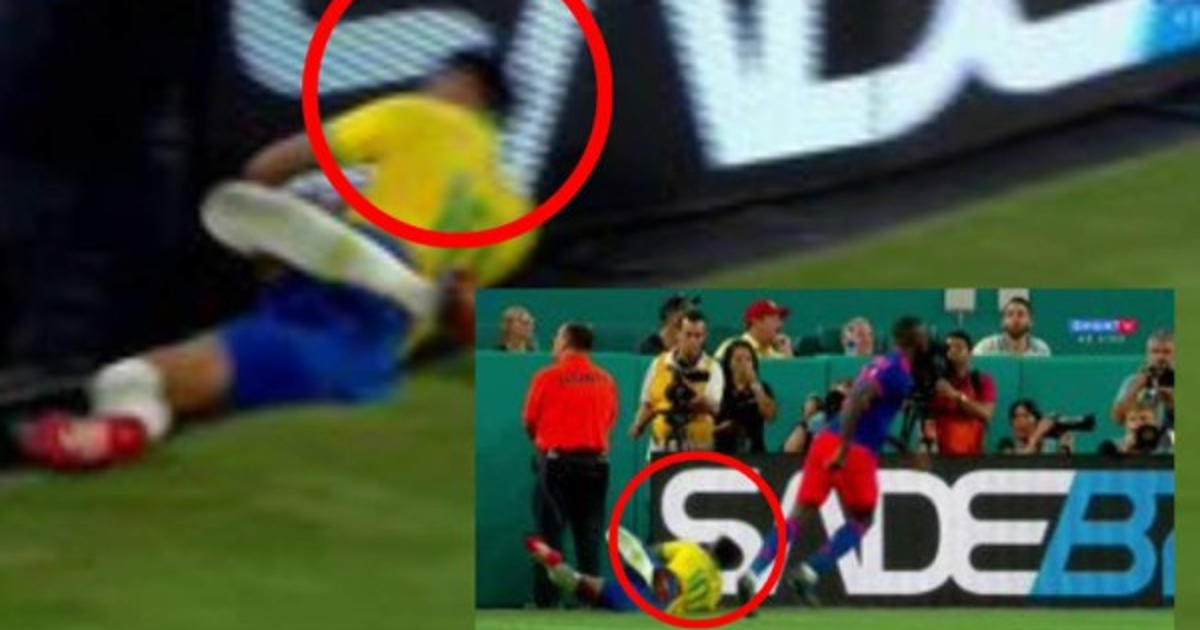 Ambos jugadores disputaban la pelota y el colombiano empujó al carioca y este fue a impactar contra una de las vallas de publicidad del estadio con su cara.