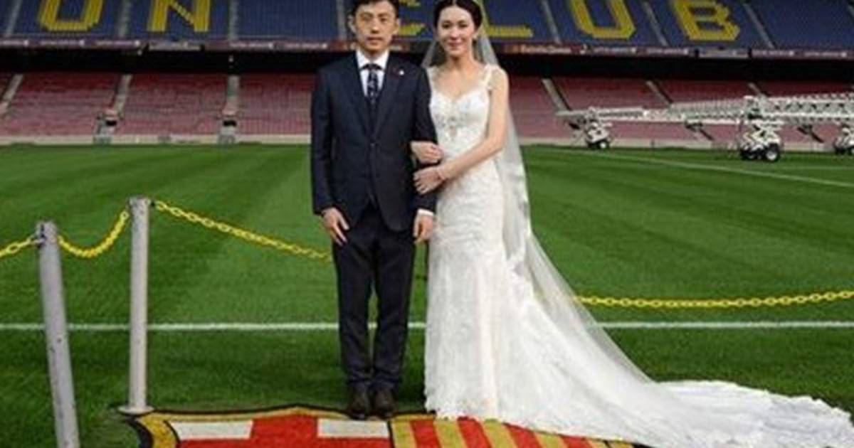 Liu Shutong le regaló el anillo de compromiso a Liu Panqiu mientras visitaba el estadio Camp Nou y medio después cumplió con su palabra y contrajo matrimonio en el césped del Barcelona.