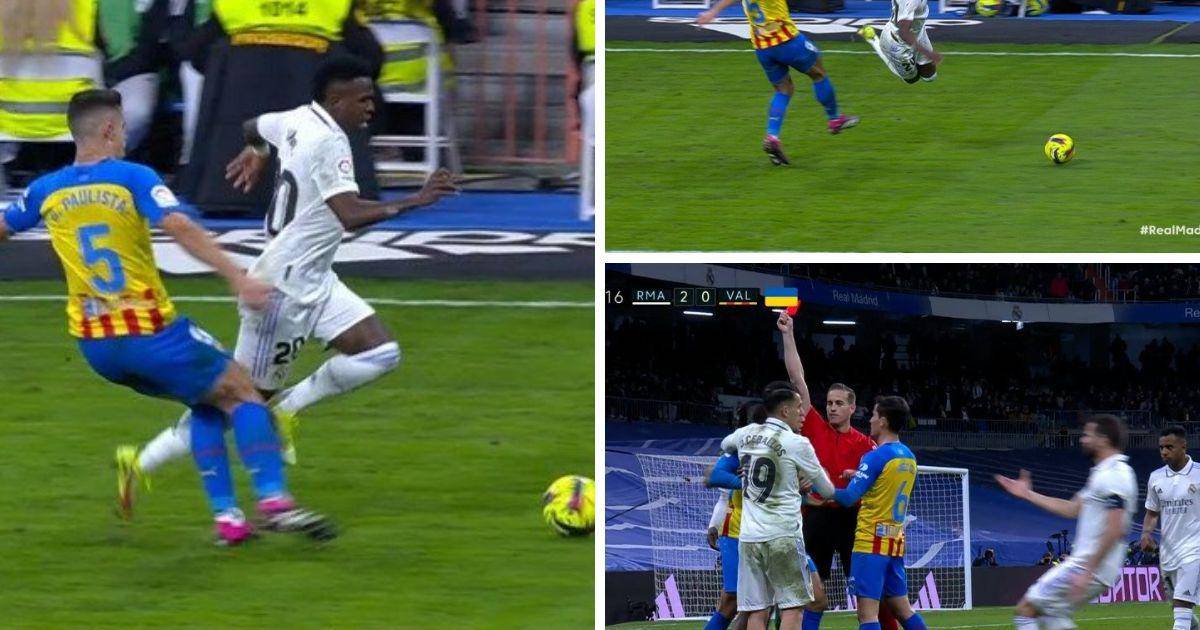 En el minuto 70, el extremo brasileño madridista recibió en la banda izquierda, encaró al defensor y se fue de él con un autopase. Sin opción de llegar al balón, Gabriel Paulista perdió la cabeza y le propinó una patada a propósito con excesiva fuerza a la altura de la rodilla.