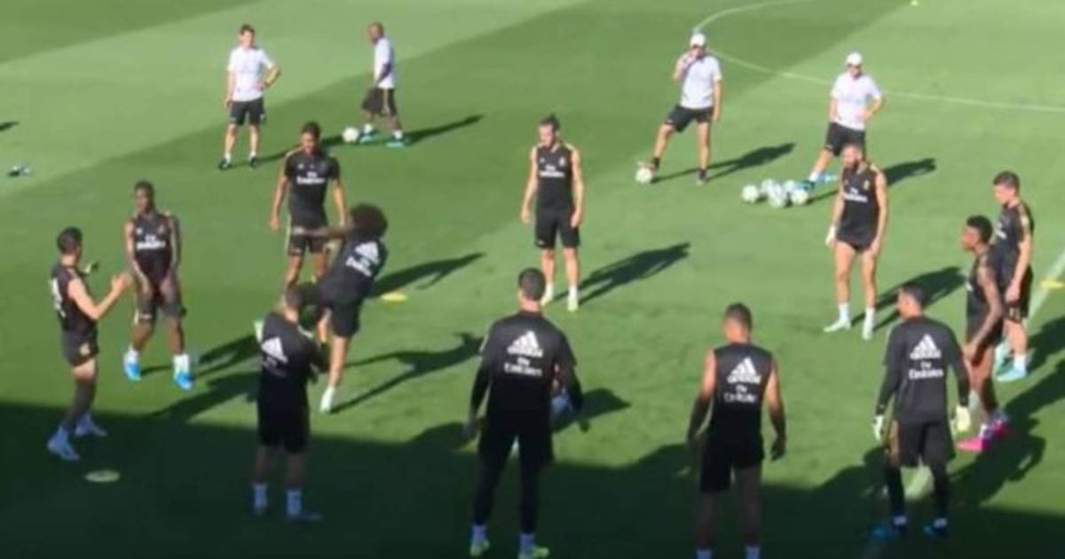 Resulta que durante el rondo previo al arranque de la práctica, el defensor brasileño le propinó un pelotazo por accidente en los genitales.