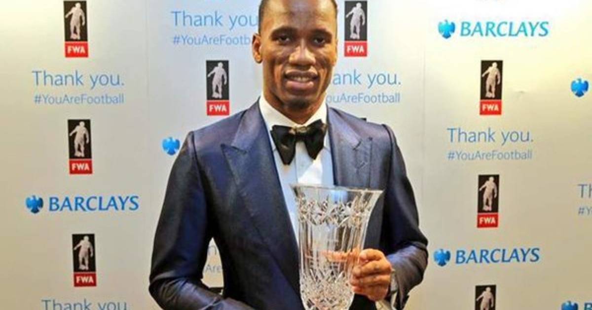 El jugador marfileño del Chelsea, Didier Drogba recibió el premio homenaje que entrega cada año en enero la Asociación de Periodistas Deportivos (FWA, en inglés) en Londres, con el que le reconocen su contribución al fútbol en Inglaterra.