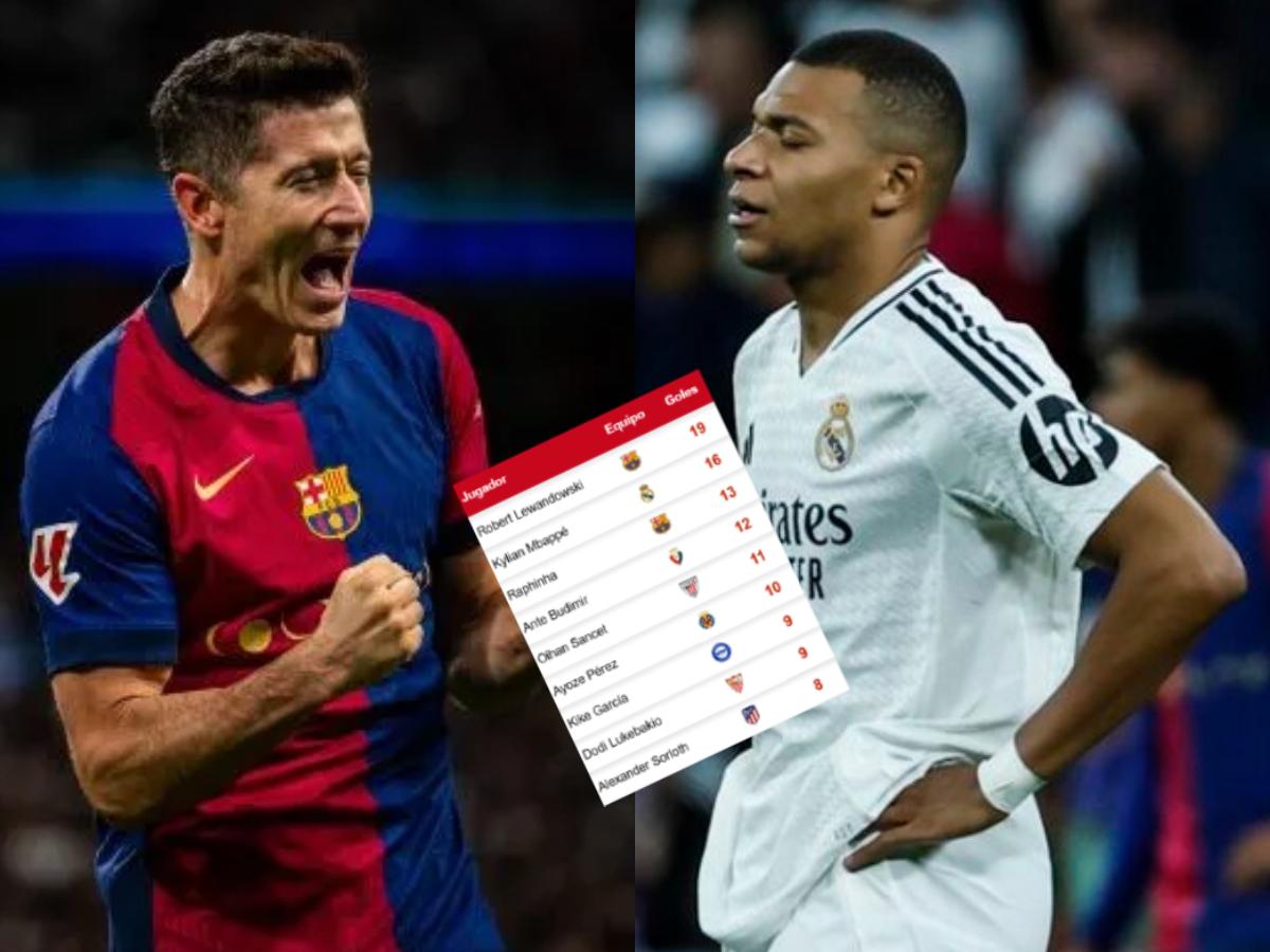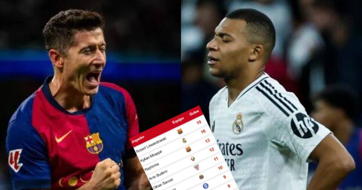 Lewandowski llegó a los 19 goles, dejando atrás a Kylian Mbappé (16), más atrás de ellos viene Raphinha con 13, quien busca acercarse cada vez más al delantero francés con su gol ante Sevilla.