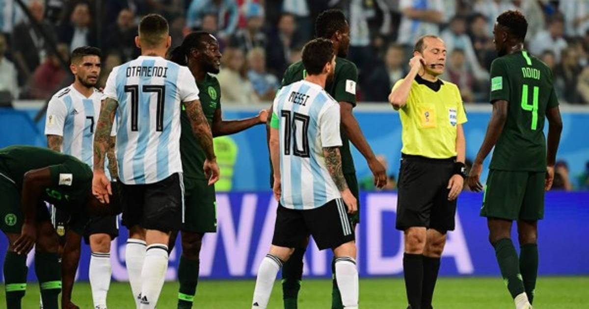 El silbante se apoyó en la repetición y cuando miró la jugada, indicó que la pelota pegó en el brazo de forma intencional y ante el reclamo de los jugadores de Nigeria, los aficionados de la albiceleste gritaron de emoción.
