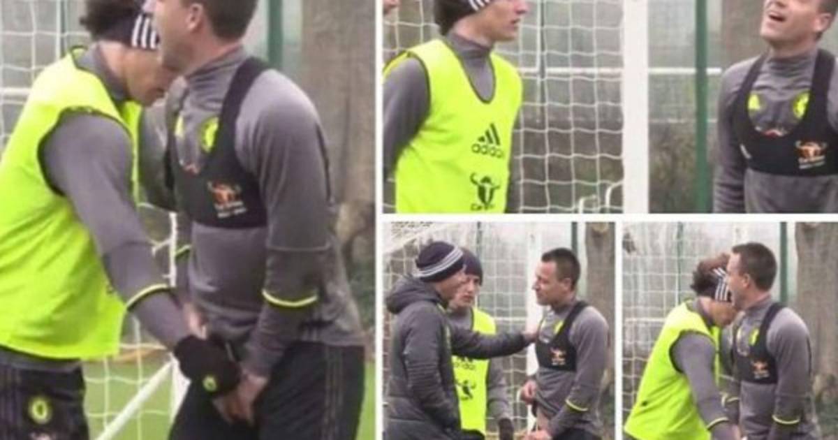 bromita a su líder John Terry, durante una sesión de entrenamiento.