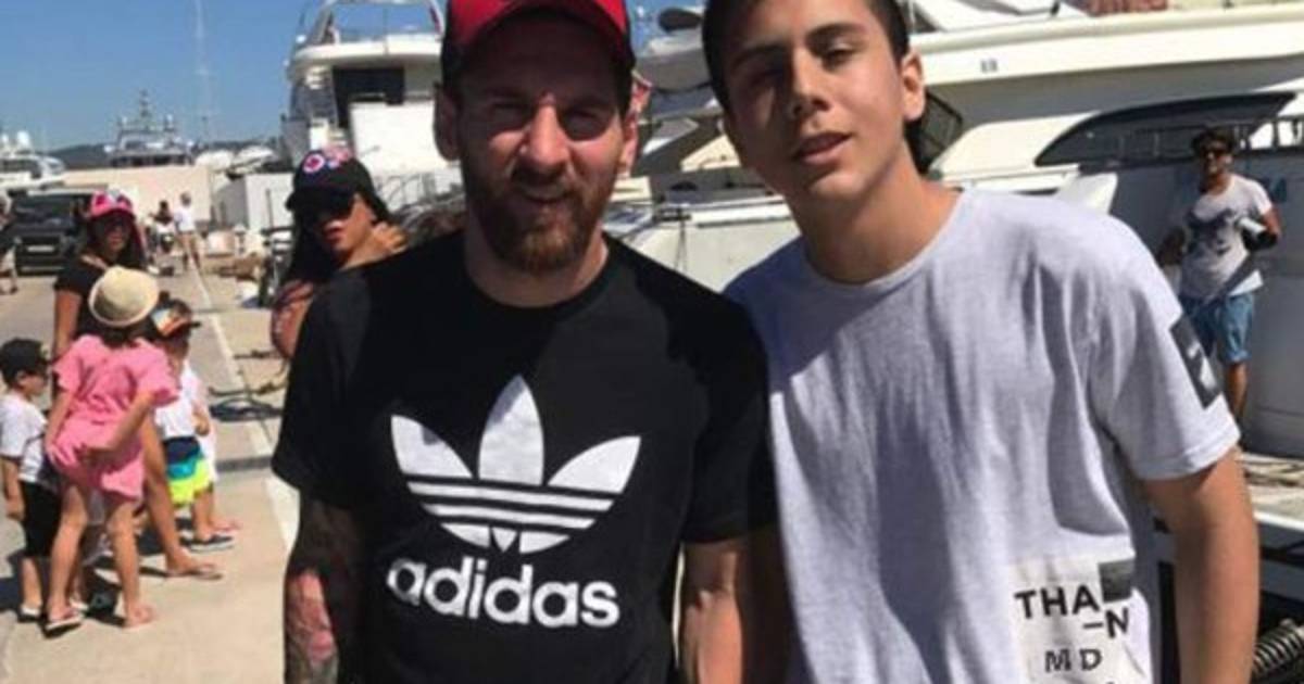Leo Messi takes a picture with a fan in Ibiza ????