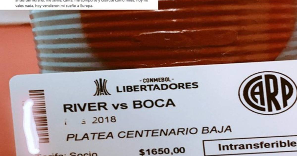 'Eras el pase a un sueño, te vi campeón de América en la cancha pero verte campeón enfrentando a tu eterno rival era único en la historia, estuve 10 horas antes del horario, me senté, cante, me comporté y disfruté como miles, hoy no vales nada, hoy vendieron mi sueño a Europa'.