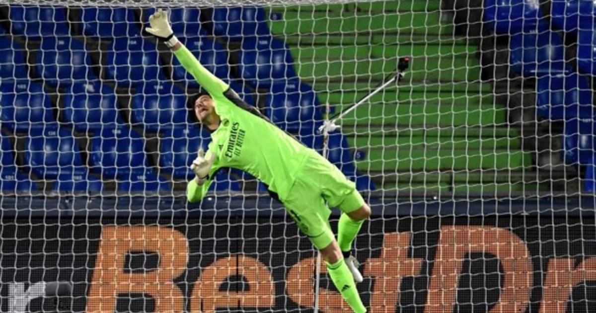 6' ¡ATAJADÓN DE COURTOIS! Remate mordido de Olivera tras un tiro libre y el arquero madridista se estira para evitar el primero del partido.