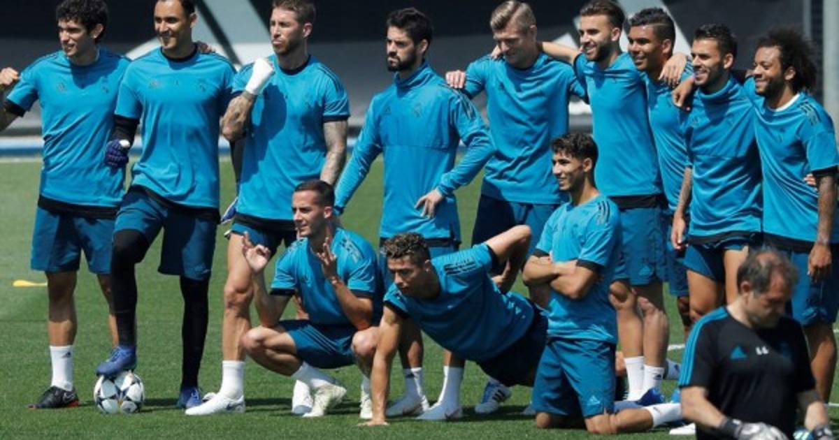 Ante todos los focos, atraído por la tercera final consecutiva de la Champions League que disputará el Real Madrid contra el Liverpool, los 24 jugadores del club blanco iniciaron el entrenamiento con una carrera ligera para calentar antes de los siguientes ejercicios.