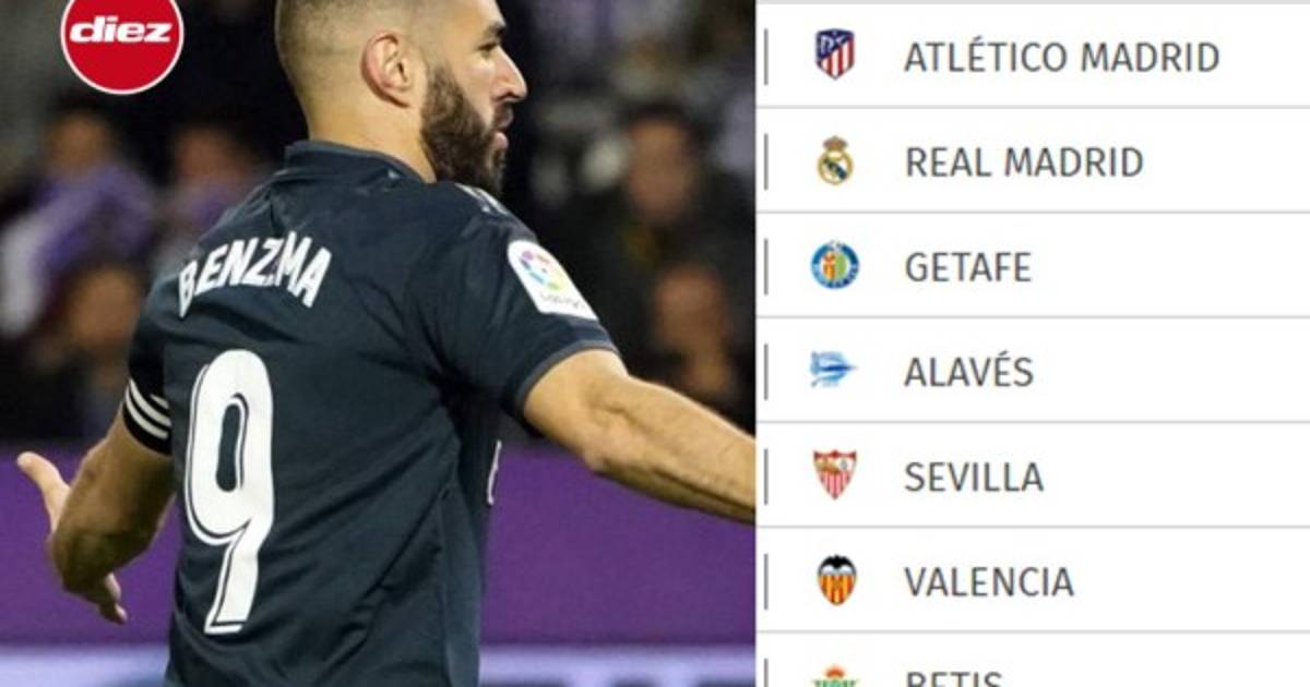 Por su parte, el Getafe se ubica en el cuarto lugar seguido por el Sevilla, Valencia, Betis, Real Sociedad y Eibar.