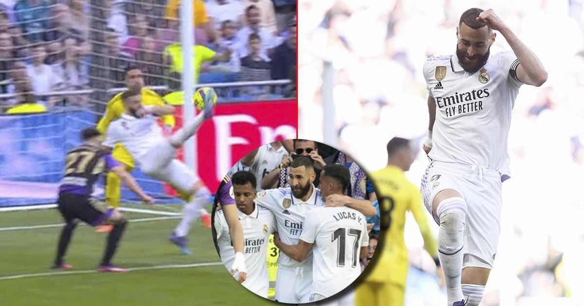 El Real Madrid no tuvo problemas para golear este domingo al Valladolid en el Bernabéu (6-0) por la jornada 27 de LaLiga; Karim Benzema montó un show con tres golazos en siete minutos y uno lo hizo de chilena antes del descanso.