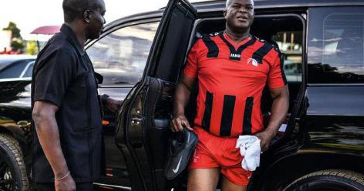 El hombre de 61 años se bajó y estaba vestido como futbolista y con la número 9 en su espalda. Su presencia siempre causa expectativa en todo el país, especialmente en Paramaribo.