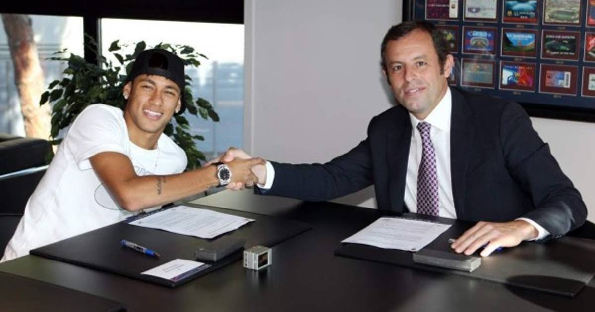 contrato suscrito por el delantero brasileño Neymar con el Barcelona estipula que el jugador cobre al término de las cinco temporadas firmadas con el club un mínimo de