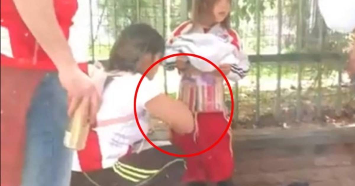 El fanatismo en el fútbol lleva a los aficionados al límite. Esta madre forra de bengalas a una niña en las afueras del estadio