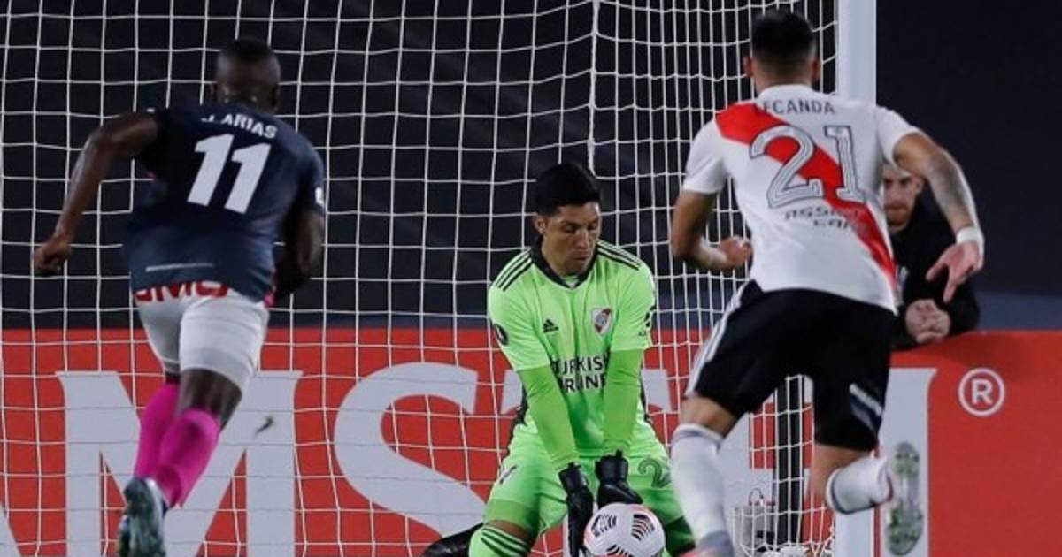 Fabrizio Angileri (3) y Julián Álvarez (5) marcaron los goles para el triunfo de River en el estadio Monumental, y Kelvin Osorio (72) descontó para el conjunto bogotano, en una noche casi sin apremios para Enzo Pérez, el inesperado portero que se mudó de la mitad de la cancha a la valla 'millonaria'.