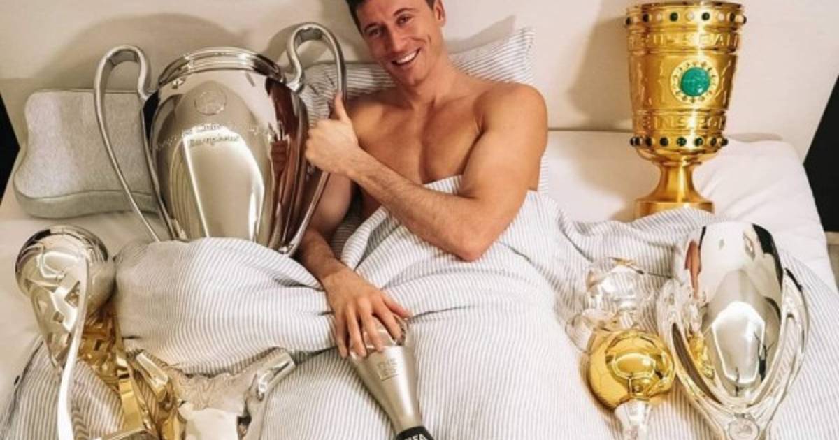 En su cuenta de Instagram, Lewandowski se mostró en su cama rodeado de todos los trofeos que consiguió a nivel grupal e individual, como, por ejemplo, el trofeo de la Copa de Alemania, la Bundesliga, la Champions y la Supercopa de Europa.