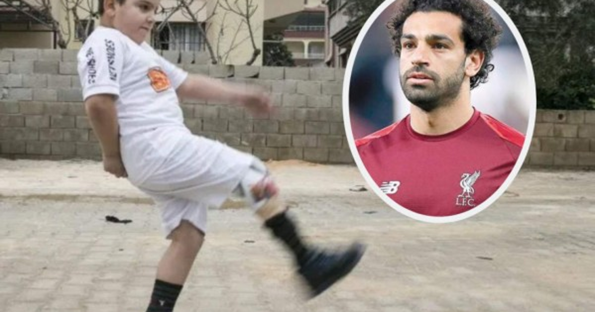 El pequeño recibió por parte del jugador, unas botas firmadas y un poster del futbolista egipcio, actual figura del Liverpool de Inglaterra.