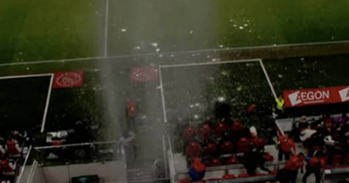 Mientras se disputaba el encuentro, de repente cayó un bloque de nieve encima de los banquillos y de la primera fila de asientos del estadio de Amsterdam..