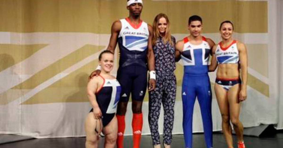 Stella McCartney se inspiró en la 'Union Flag' (bandera del Reino Unido) a la hora de diseñar la equipación, que tiene toques azules, blancos y rojos.