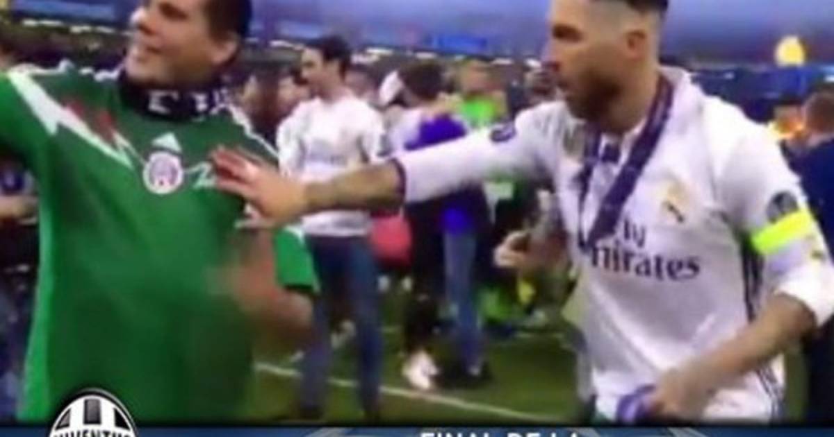 El defensor y capitán del cuadro merengue quitaba a todo al que se le ponía enfrente. Ramos quería posar para las diversas cámaras pero el montón de aficionados que invadieron el terreno de juego del Millenium Stadium de Cardiff se lo impedía.