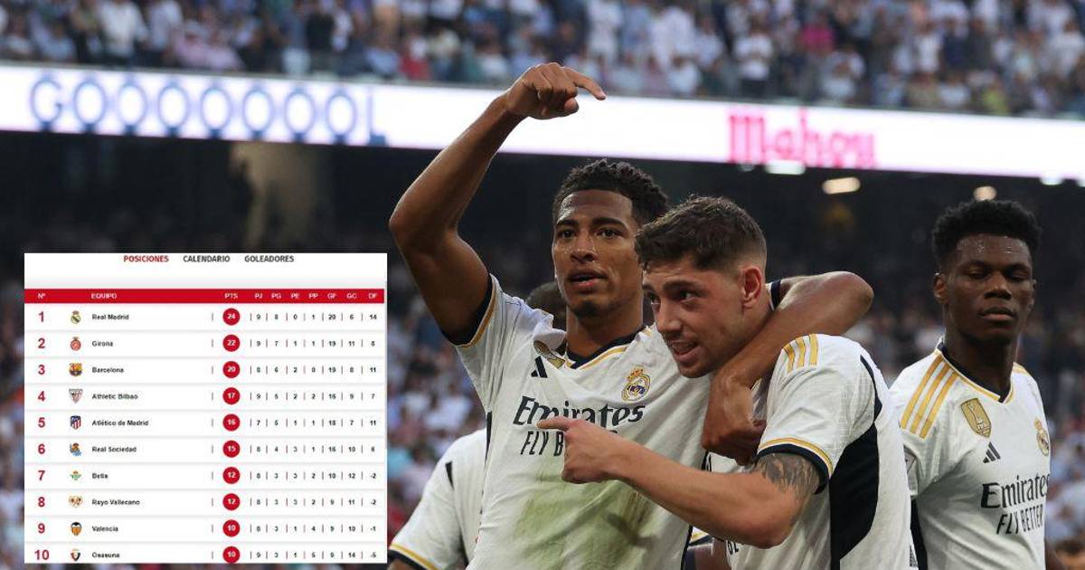 El Real Madrid, tras nueve partidos disputados, es líder en España con 24 puntos.