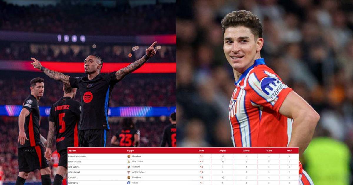 Otro que sumó anotación fue Julián Álvarez, fue en la derrota 2-1 del Atlético. “La Araña” llegó a los 7 tantos e igualó la línea de Kylian Mbappé, Vinicius y Vangelis Pavlidis.