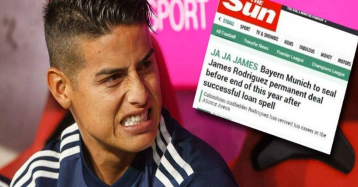 'El Bayern de Múnich sellará el acuerdo permanente de James Rodríguez antes de fin de año después de un exitoso préstamo', dice el titular completo.