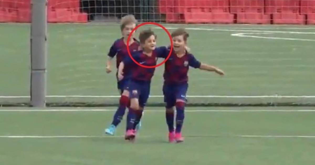 El pequeño de siete años juega para las inferiores del cuadro catalán y demostró una buena conducción para finalizar un jugada con un remate de derecha que se coló al fondo.