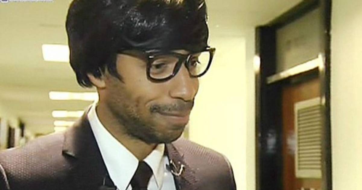 apareció con un look muy del estilo 'nerd', asombrando a propios y extraños hasta que se quitó la peluca y las gafas, para finalmente ser reconocido.