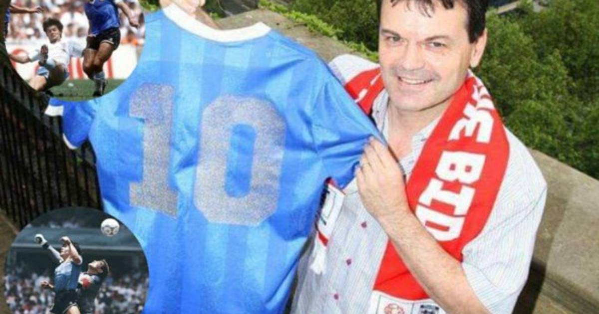 El ex futbolista inglés Steve Hodge, es quien porta la mítica camiseta que usó el Pelusa en el juego de cuartos de final. Hodge aclaró días atrás que el jersey 'no está a la venta' y expresó su enojo por la versión que circuló desde que murió el crack mundial.