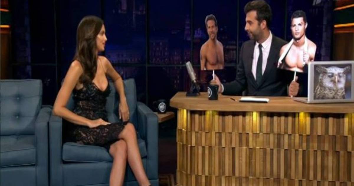 La modelo se notó algo contrariada de entrada cuando Urgant le preguntó por su 'ex' Cristiano Ronaldo y por los presuntos problemas de pareja con su actual novio Bradley Cooper alzando unas fotos de ambos con los torsos desnudos.