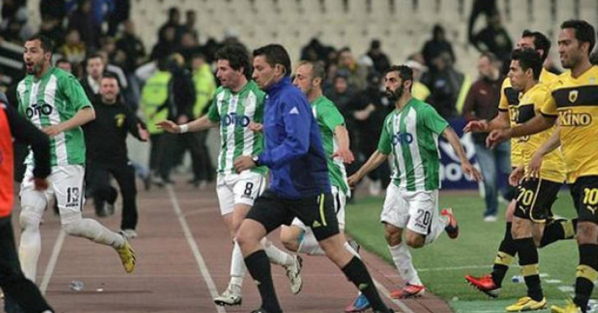 Lamentable lo vivido en Grecia este domingo. El partido entre el AEK Atenas y Panthrakikos por el descenso y en el que los puntos eran vitales, tuvo que ser interrumpido cuando aficionados locales invadieran el campo para agredir a sus futbolistas.