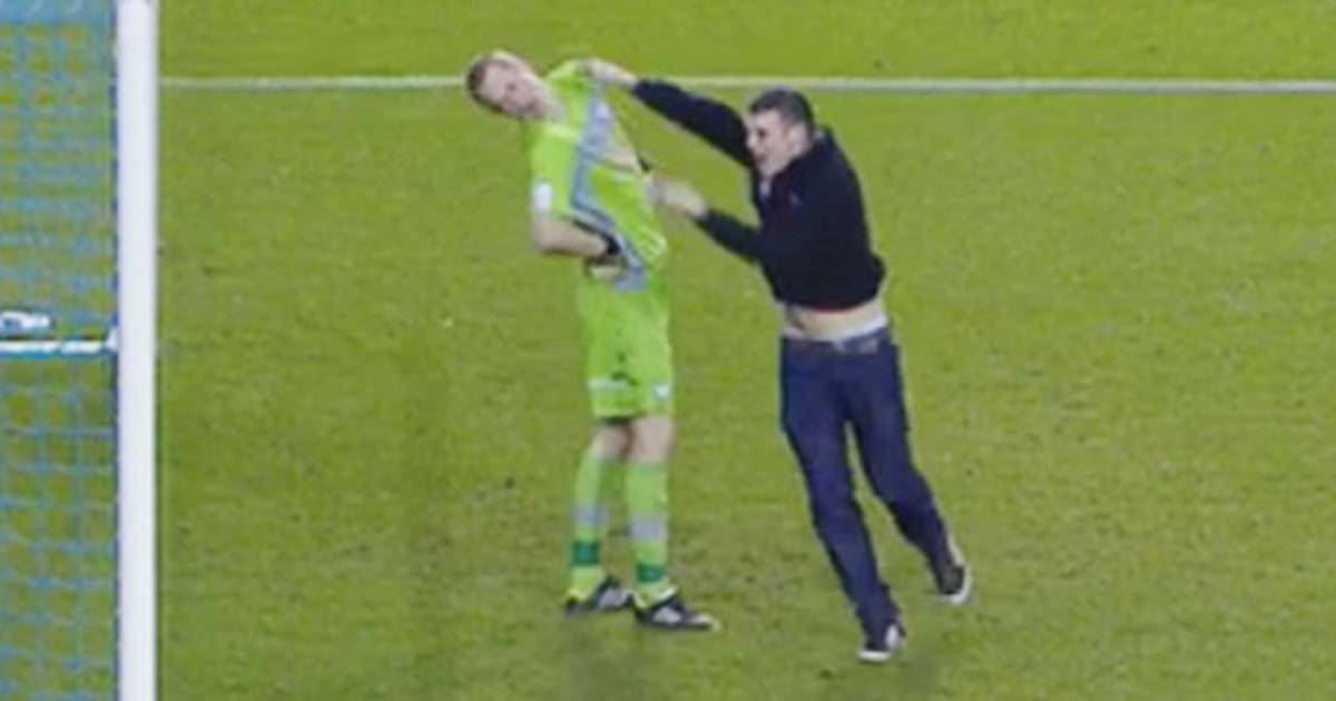 El portero quedó tendido en el césped tras el golpe que recibió en el rostro y fue atendido por el cuerpo médido de su club. Michael Tonge anotó el empate a trece minutos del final y desató la locura de un hincha que interrumpió el partido para agredir físicamente al arquero de su equipo.