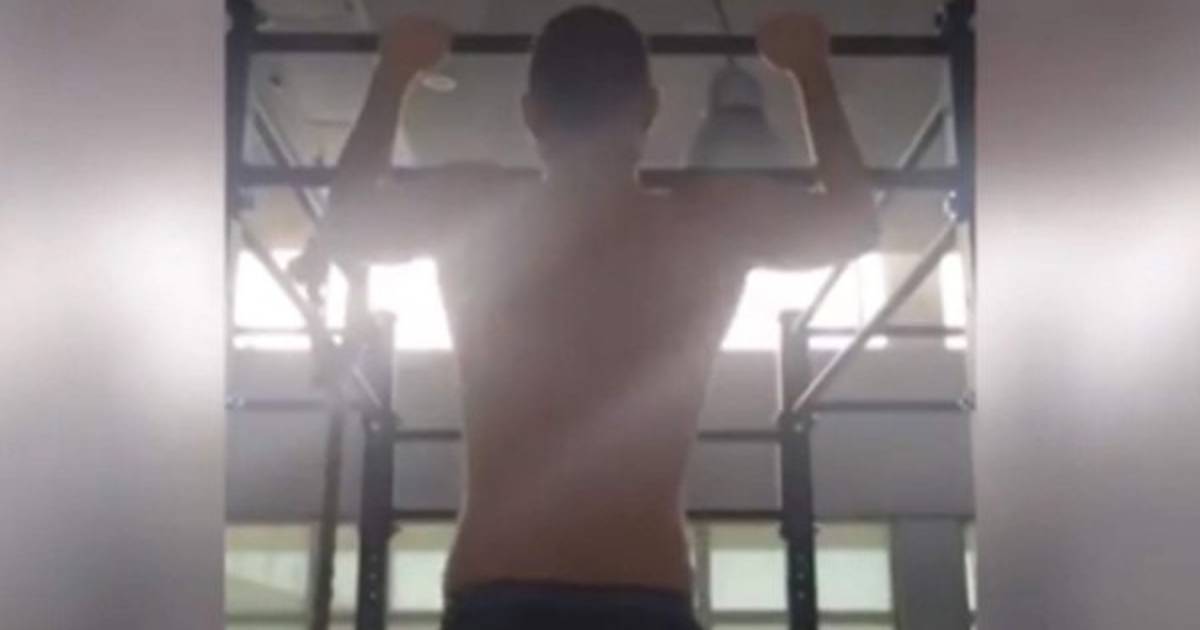 donde hace una serie de elevaciones con los brazos al estilo entreno de crossfit.