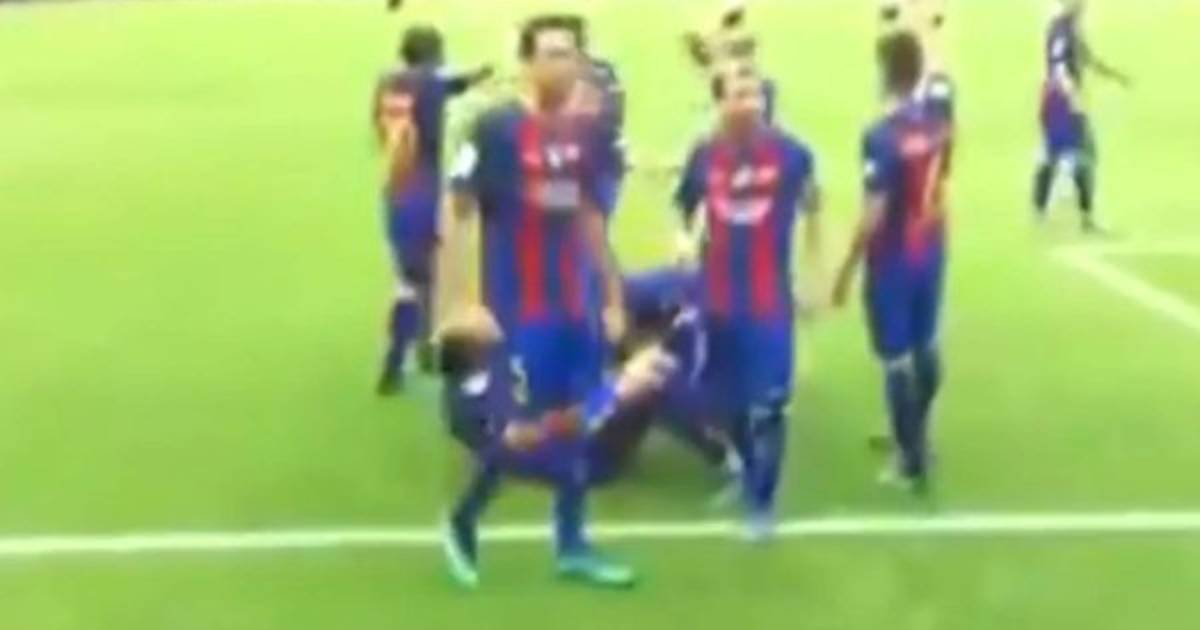 En el último gol del Barcelona los jugadores celebraban el gol de Messi que les daba la victoria en el último minuto, pero la grada de Mestalla le lanzó un botellazo que impactó en Neymar y Luis Suárez.