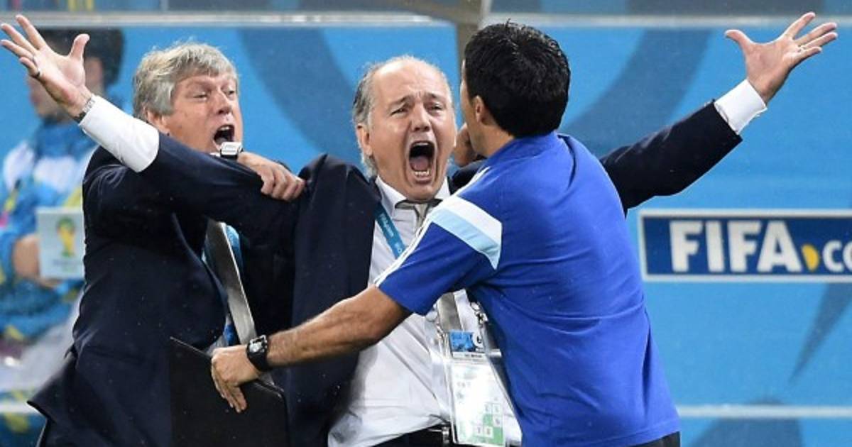 Mientras sus asistentes festejaban cada vez que sus jugadores acertaban, Sabella se mantenía firme y le daba la espalda al campo por ratos. Levantó las manos cuando Romero le atajó a Sneijder y volvió a su posición.