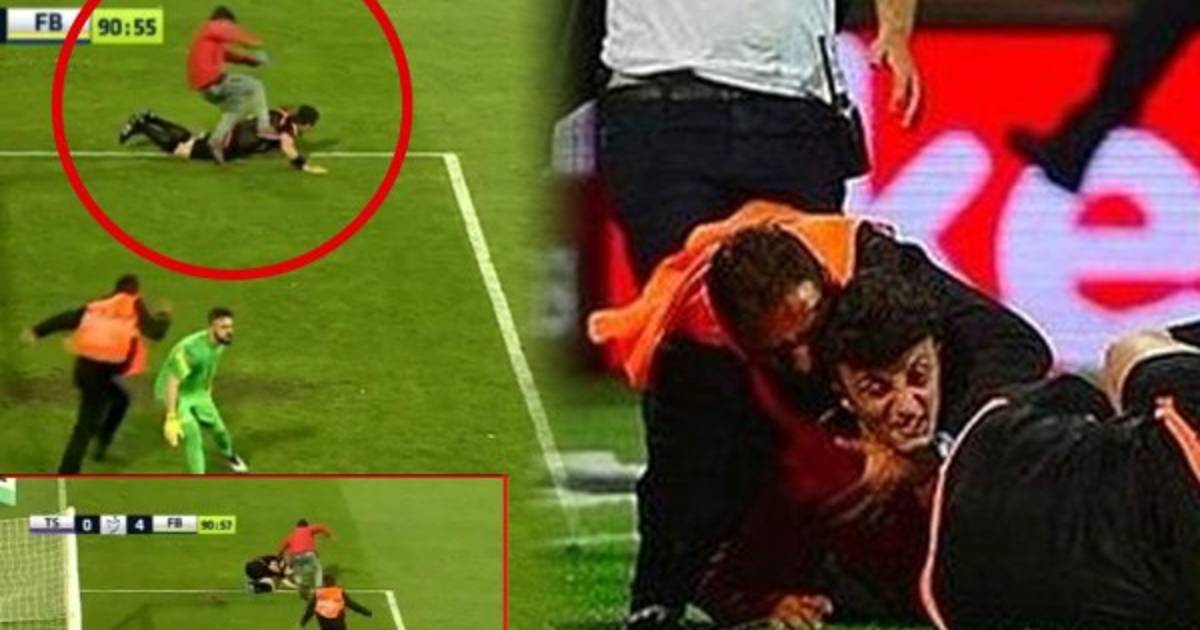 En el tiempo de prolongación, un espectador abandonó la grada de uno de los fondos del estadio Hüseyin Avni Aker para atacar a uno de los asistentes, al que empujó al suelo y golpeó en varias ocasiones hasta que fue reducido por los miembros de seguridad.