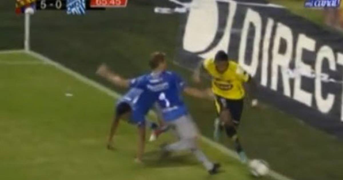 El defensor argentino Cristian Nasuti no toleró la derrota 5-0 de su equipo Emelec frente al eterno rival de la liga ecuatoriana y se fue expulsado tras una brutal infracción.
