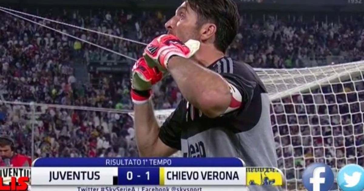 Juventus empató 1-1 con el Chievo en casa, pero al final del primer tiempo cuando perdían 1-0, el portero Gianluigi Buffón dejó una imagen que está dando de qué hablar.