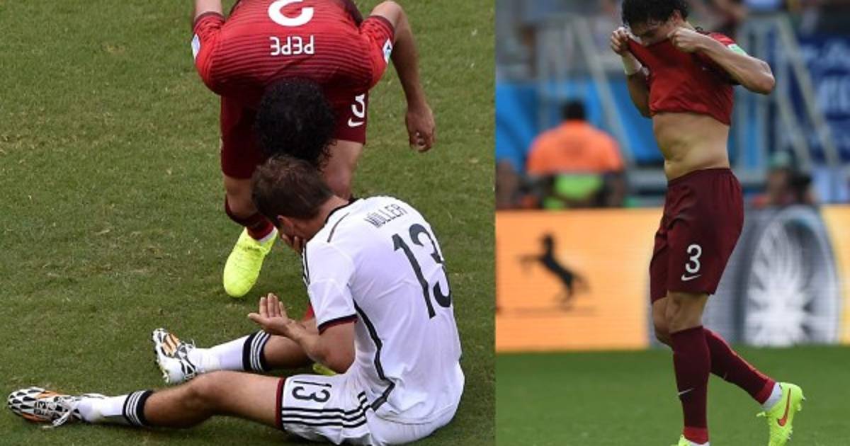 El defensa de Portugal Pepe dejó con 10 a su selección en el partido de Alemania por un cabezazo a Thomas Muller.