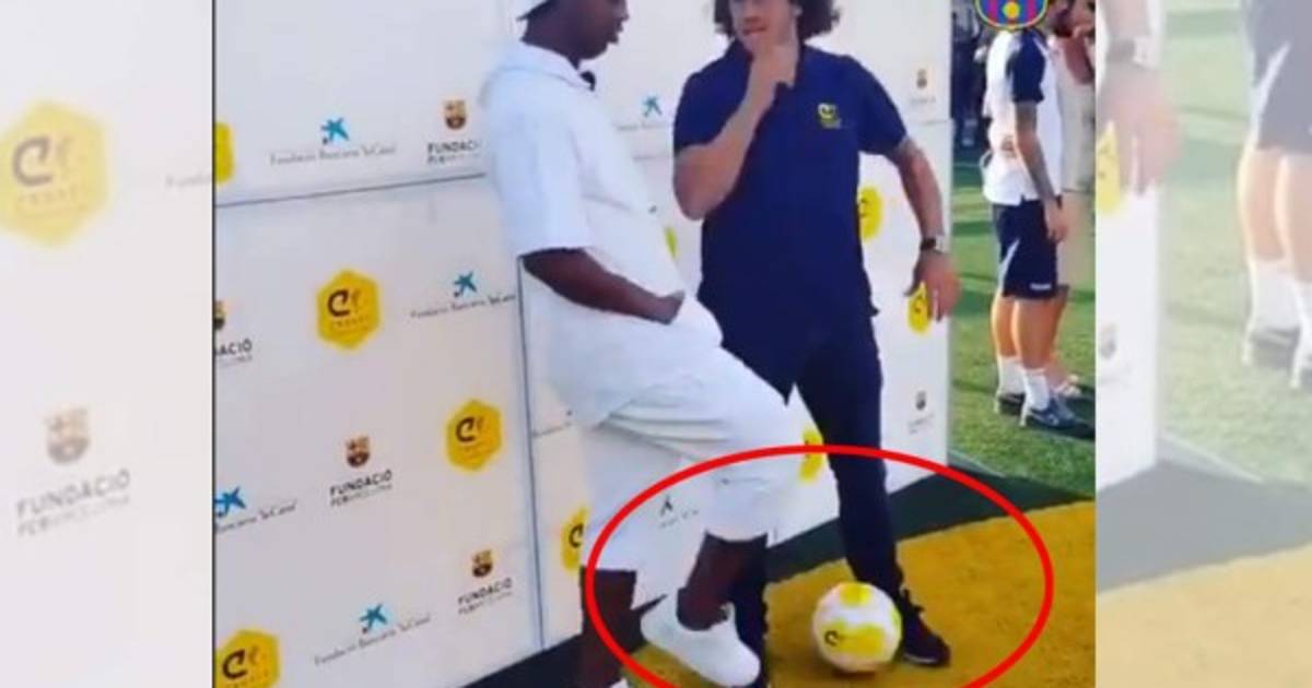 Este viernes el ex defensor del Barcelona ha compartido con el brasileño Ronaldinho un evento publicitario y con la alegría que representa al carioca este en un descuido le pasó la pelota por en medio de las piernas al zaguero.