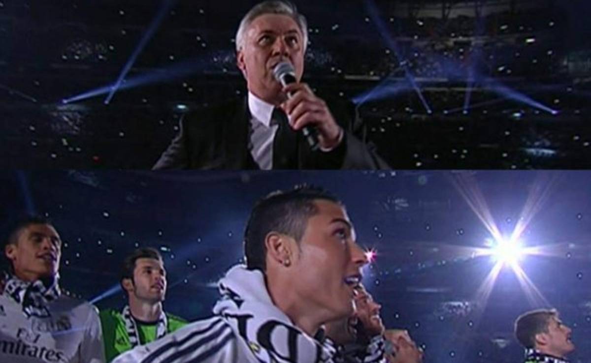 La fiesta no para y hoy el estadio Santiago Bernabéu vivió toda la algarabía y hasta se dio el lujo de ver al entrenador Carlo Ancelotti cantar el nuevo himno madridista 'Luna Nueva'.