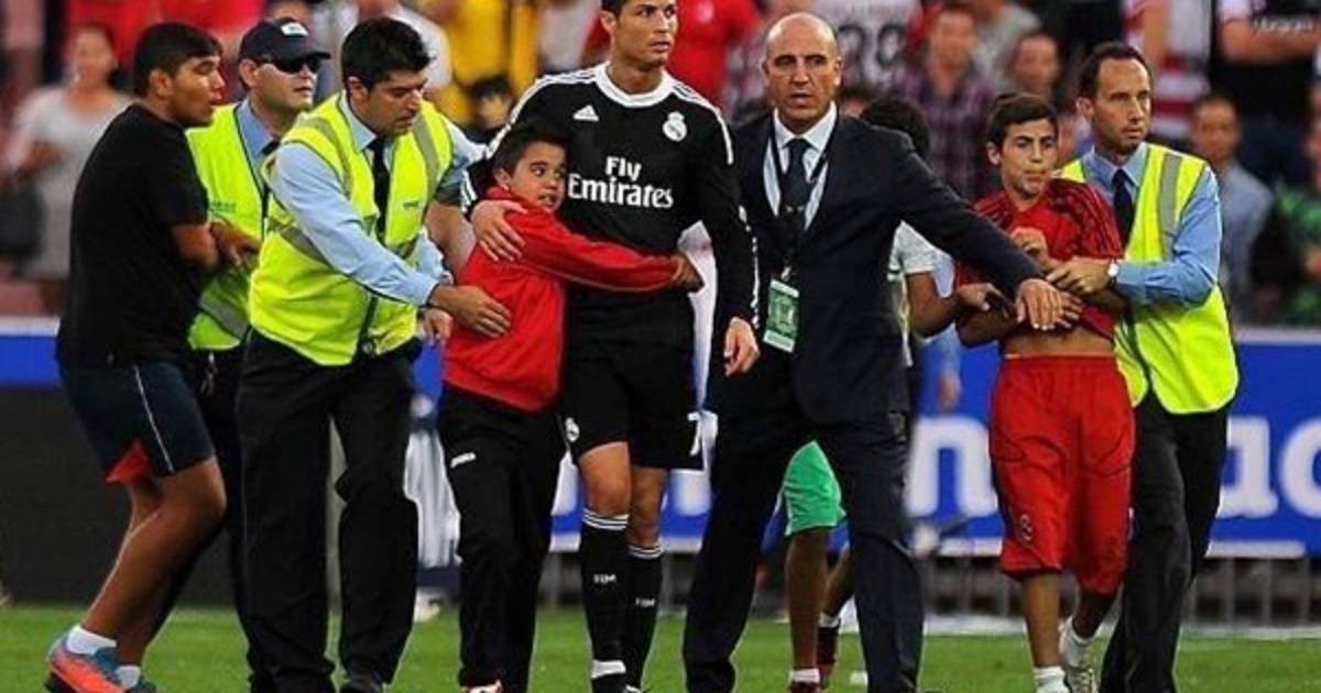 El portugués abrazó a uno de los niños a pesar de la seguridad, que finalmente logró separarlos.