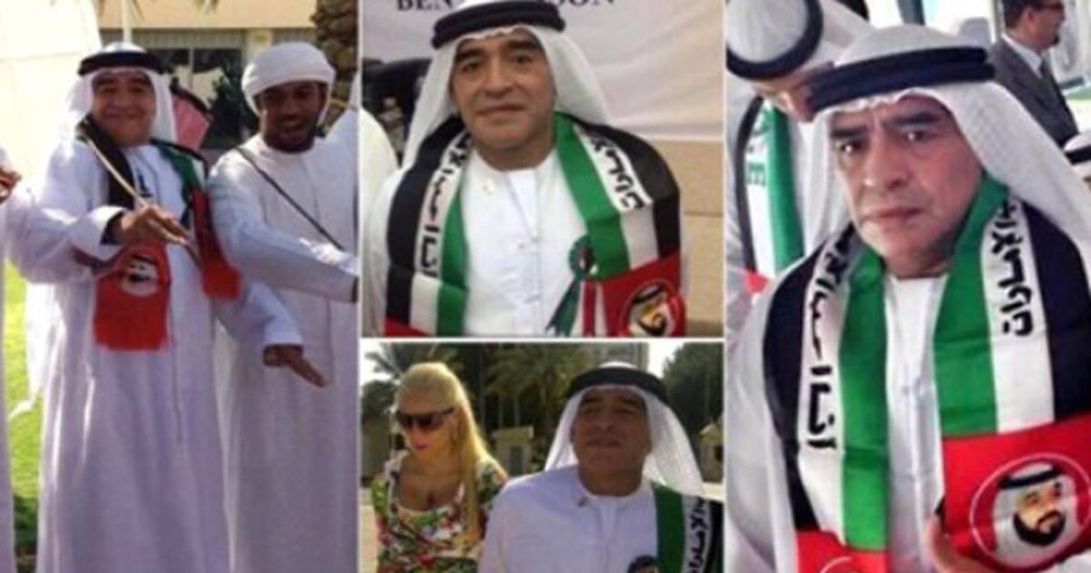 Diego Maradona participó hoy de la celebración del 42 aniversario de la independencia de los Emiratos Árabes Unidos.