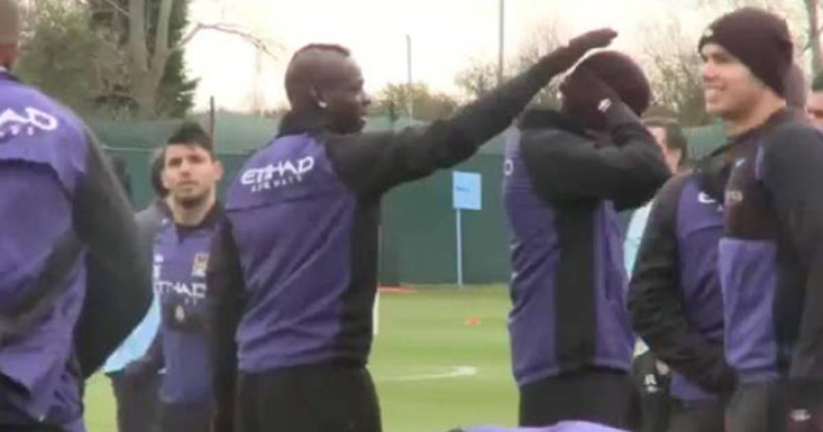 Balotelli pasaba frío en el entrenamiento, así que para ponerle remedio al asunto no se le ocurrió otra cosa que quitarle el gorro a su compañero Dzeko. El bosnio lo recuperó luego aplicando la misma estrategia del italiano.