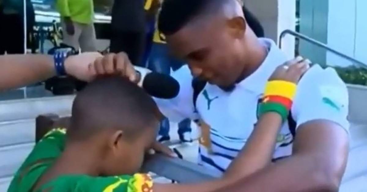 Al momento del reencuentro con el joven aficionado, ambos se abrazaron y el jugador camerunés lloró durante un buen tiempo mientras sostenía a Pedro en sus brazos.