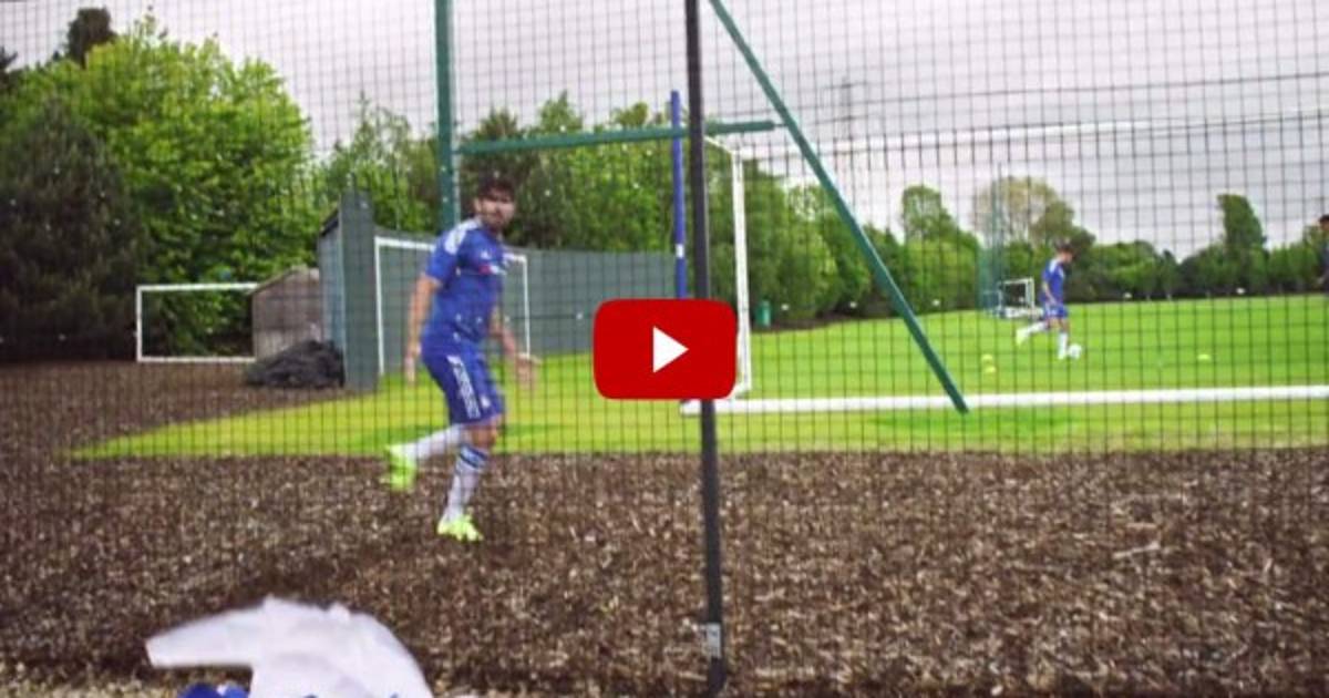 Diego Costa mostró su habilidad para ingresar a los entrenamientos del Chelsea y de una forma curiosa demostró su curiosa forma para colocarse el nuevo uniforme del club.