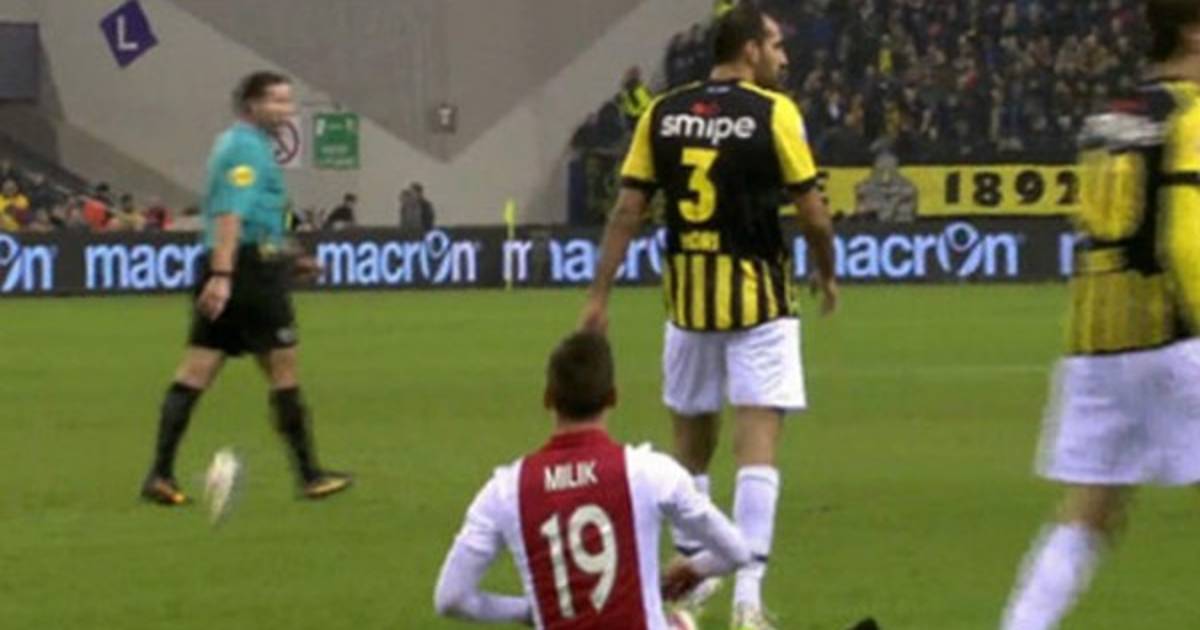 delantero polaco, Arkadiusz Milik, durante el partido que disputó su equipo el Ajax en el campo del Vitesse, no pudo ocultar su frustración, luego de sufrir una falta la cual al criterio del árbitro no lo era.
