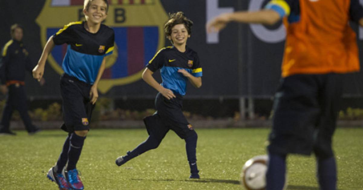 Tras posar ante los medios de comunicación y con su familia en un discretísimo segundo plano, Gabriel se ejercitó ilusionado junto a otros niños de la FCB Escola, vestido de azulgrana, como su gran ídolo, Leo Messi.